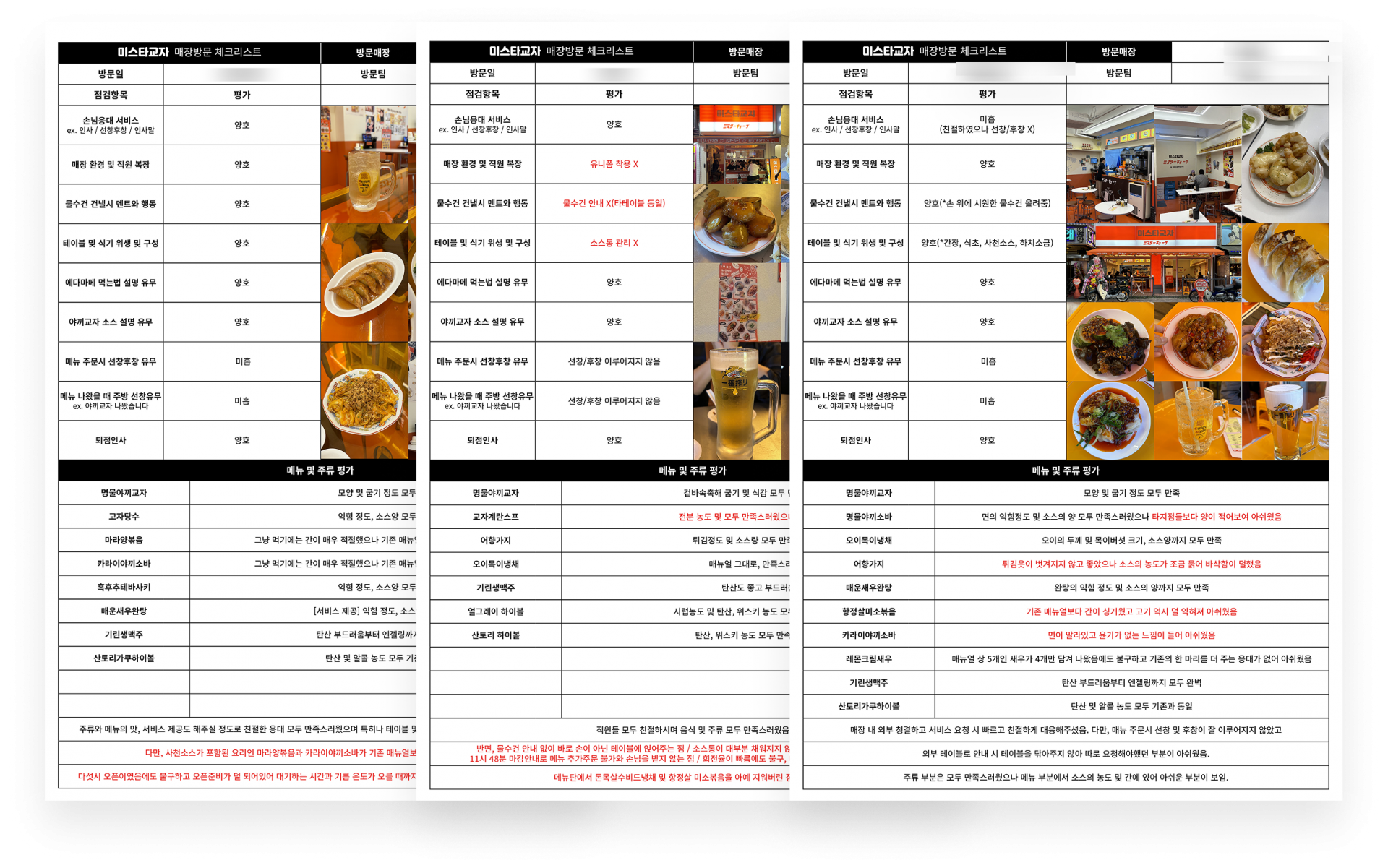 매달 매장을 선정해 맛과 서비스를 점검하고,